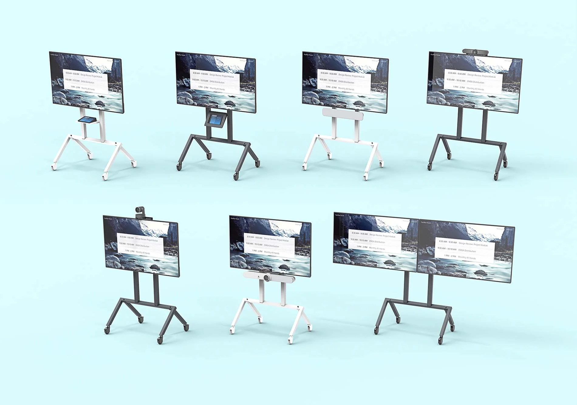 Mit Ihren Displays auf der Heckler AV Cart Basis-Konfiguration ist Ihr Arbeitsbereich jetzt bereit, sich anzupassen und für viele Jahre verbunden zu bleiben. Mit der gesamten Auswahl an Zubehör für den Heckler AV Cart können Sie jeden Wagen für Videokonferenzen, Klassenzimmer, Meetings mit dem gesamten Team, Bühnenpräsentationen und vieles mehr anpassen. Während sich die Technologie im Laufe der Jahre rasant weiterentwickelt und Ihre Geräte sich ändern, bleibt der Heckler AV Cart bestehen.