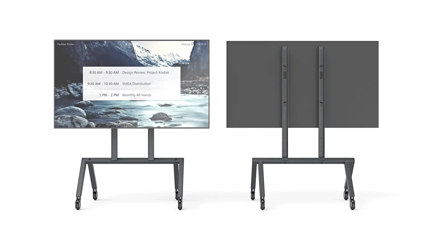 Montieren Sie 55-Zoll-, 65-Zoll- und 75-Zoll-Displays mit VESA-400-Montagemustern direkt an den vertikalen Stützen des Heckler AV Cart. Dies schafft eine saubere, moderne Plattform, die sowohl für die heutige als auch für zukünftige Technologie bereit ist.