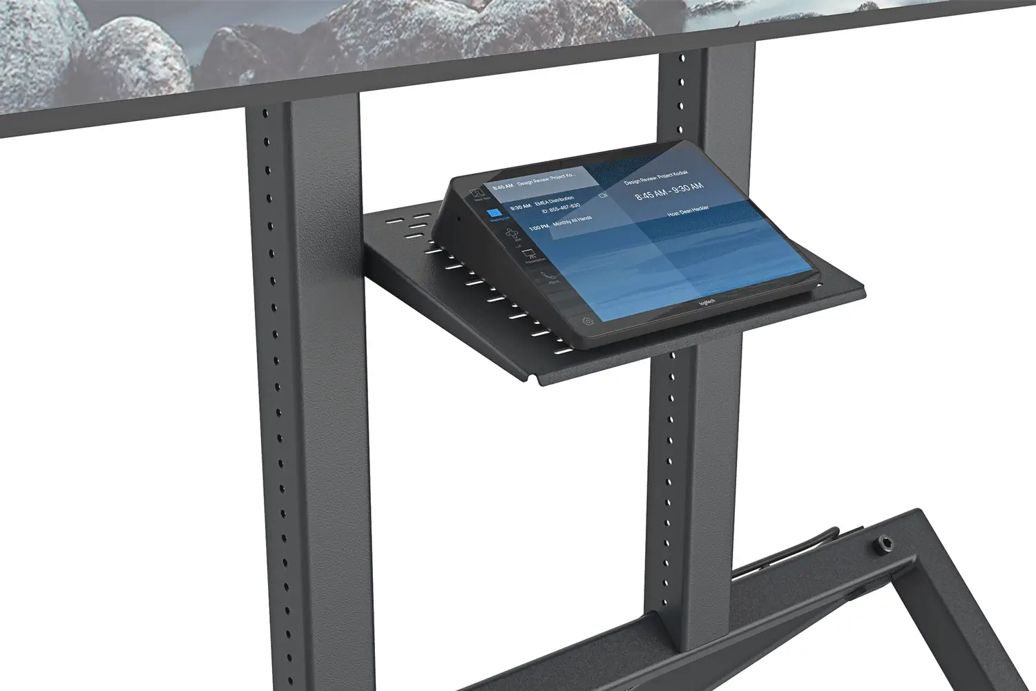 Control your meetings with a touch with Logitech Tap. Easily mount Tap at the perfect angle for your workspace, with the included Control Shelf.