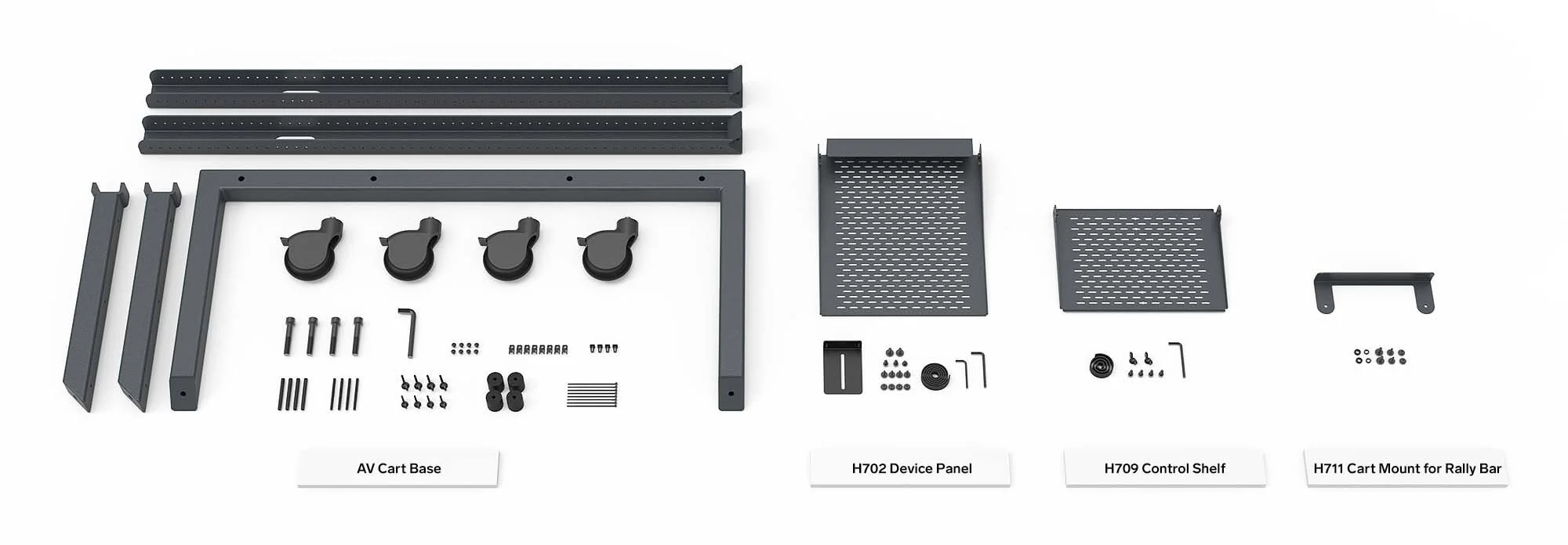 Die Rally-Familie umfasst zwei großartige All-in-One-Lösungen – Rally Bar und Rally Bar Mini. Der Heckler AV Cart für Rally Bar ist für beide konzipiert.