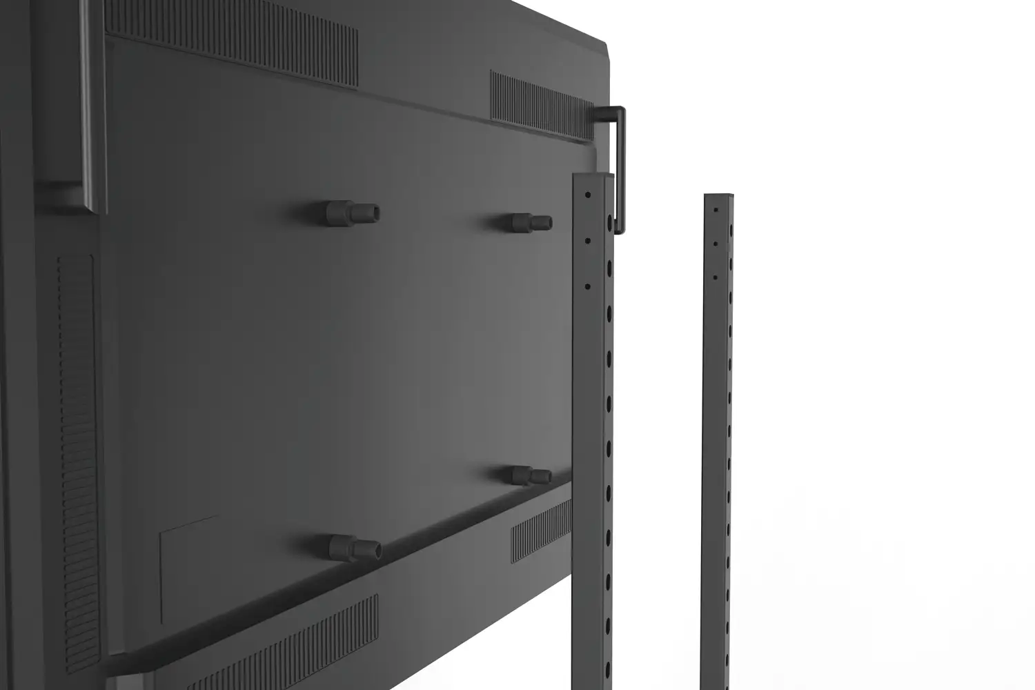 Mit unserem patentierten Säulen- und Trägersystem lässt sich der XL Display Rollwagen werkzeuglos anpassen, um Displays mit Montage-Mustern von VESA 400 bis VESA 1600 zu unterstützen. Ihr Display wird von zwei eleganten, äußerst robusten Stahlstützen getragen, wodurch eine vollständige Konstruktion entsteht, die aus jedem Blickwinkel gut aussieht.