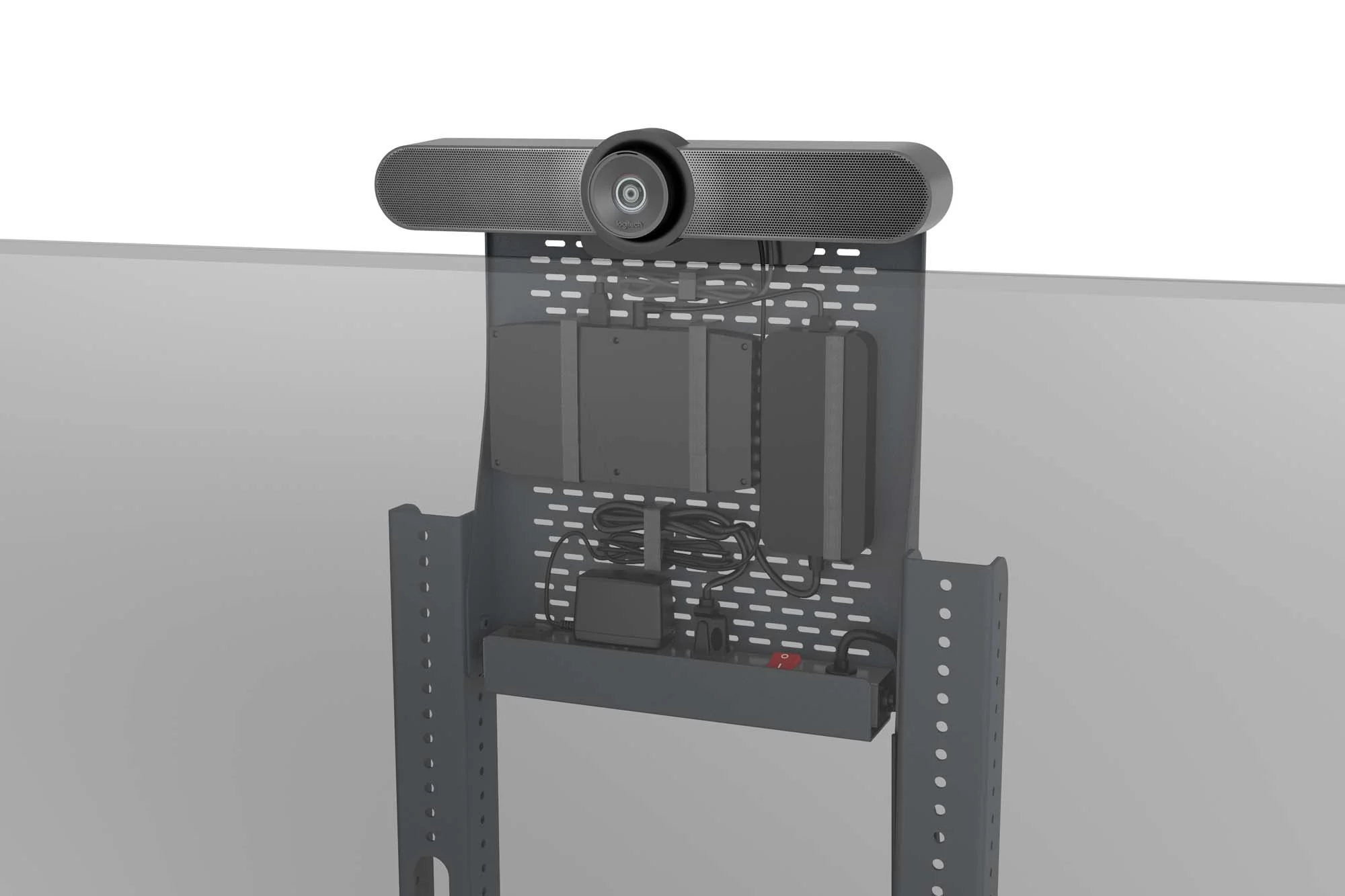 Konfigurieren Sie den Heckler AV Cart auf neue und spannende Weise mit dem Device Panel. Montieren Sie die beliebtesten Kameras, Konferenzkameras und Geräte ober- oder unterhalb Ihres Displays. Montieren und konfigurieren Sie Ihren Computer, Stromadapter und die Verkabelung im Voraus, um Massenbereitstellungen schneller und effizienter zu gestalten.