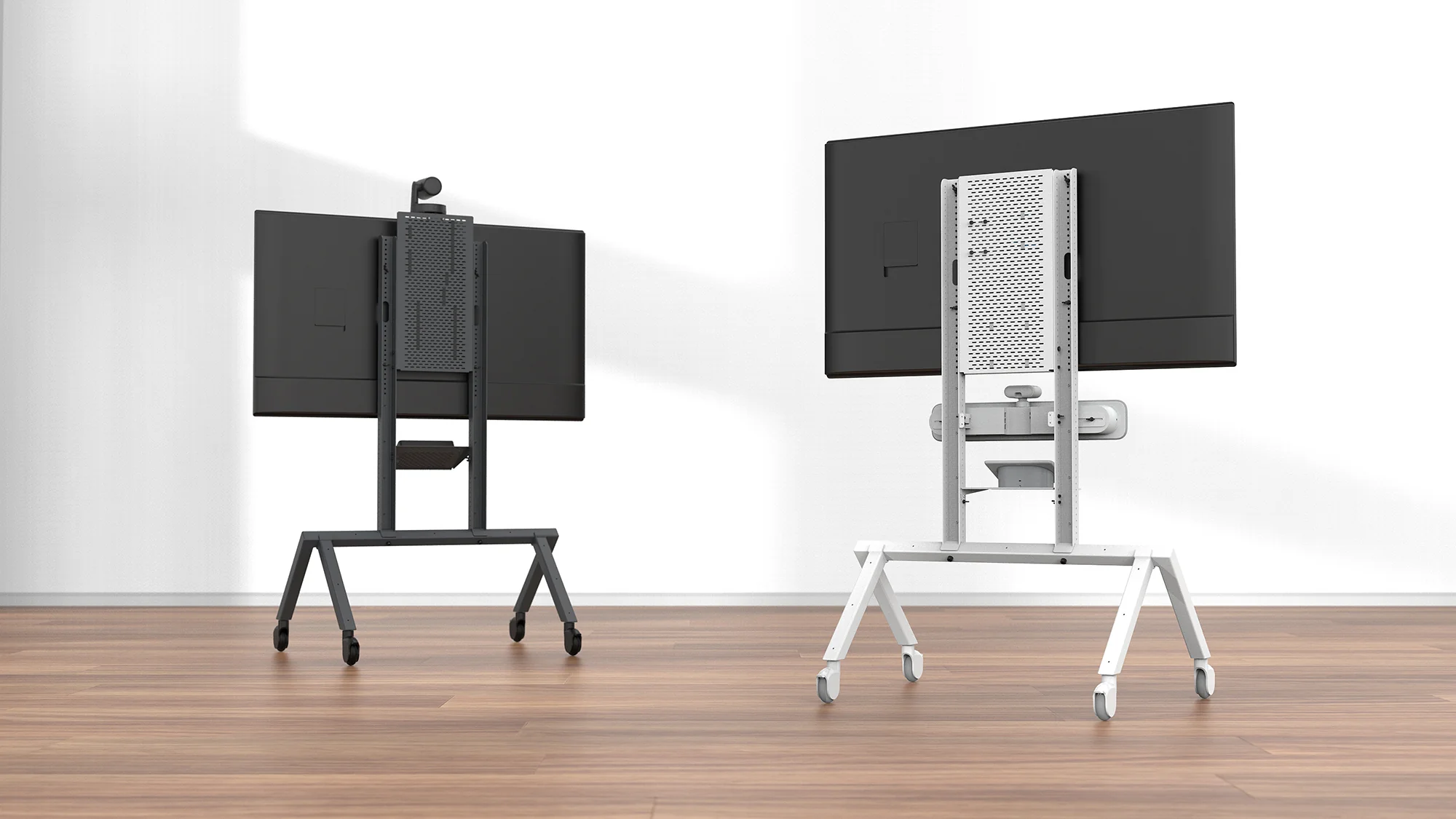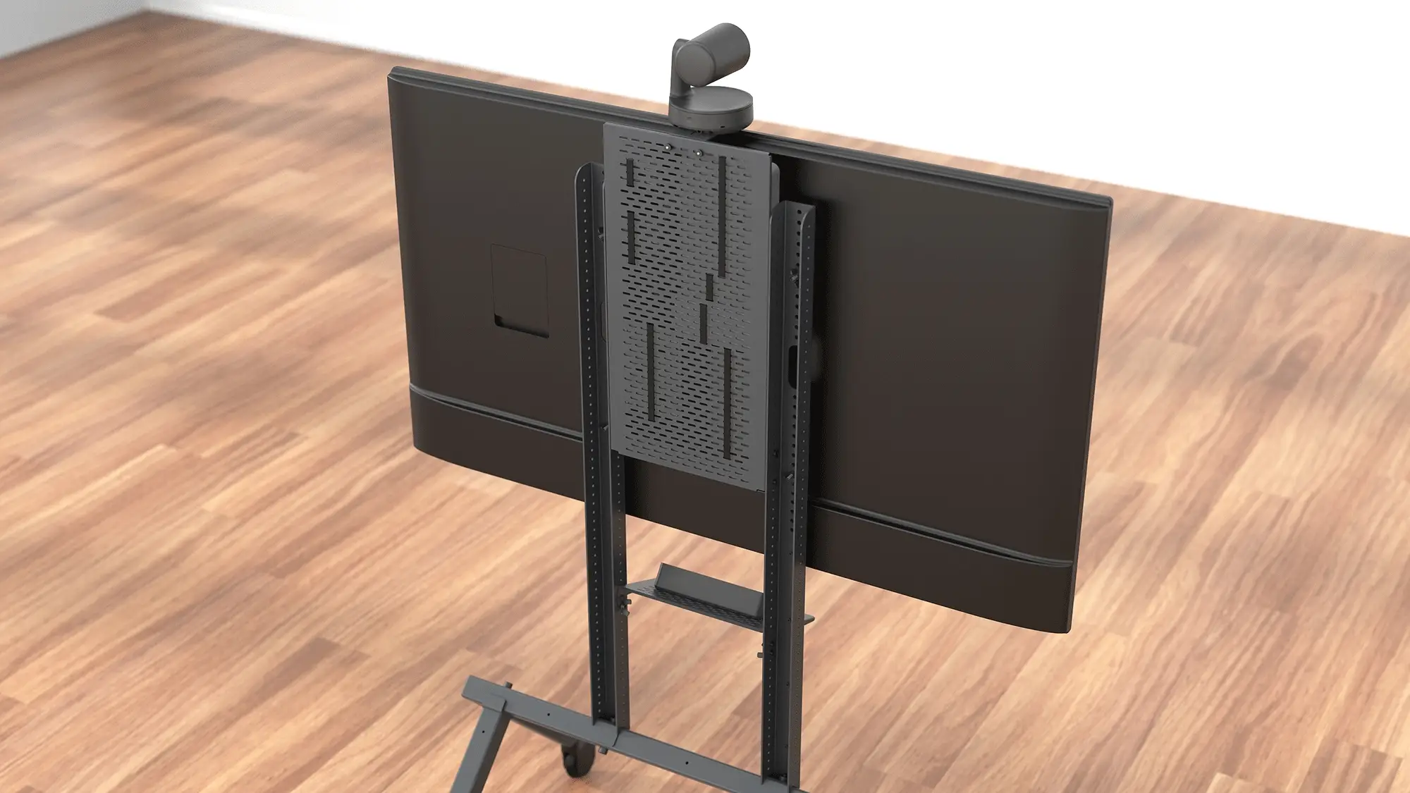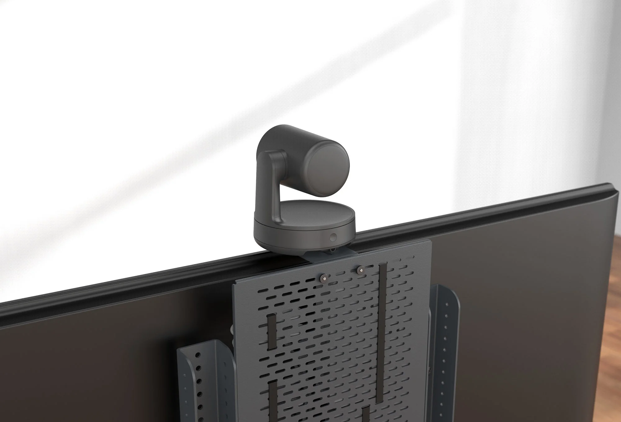 Das Dual Display Kit bietet Montagepunkte für unsere Eyeline Camera Mount. Damit können Sie eine kleine Kamera an der oberen oder unteren Stange montieren, um ein telepräsenzähnliches Augenhöhe-Erlebnis für stehende und sitzende Meetings zu schaffen. Endlose Diskussionen mit Kollegen über "oberhalb oder unterhalb des Displays" gehören der Vergangenheit an. Montieren Sie Weitwinkelkameras wie die Jabra Panacast, um Ihr gesamtes, sozial distanziertes Publikum einzufangen.