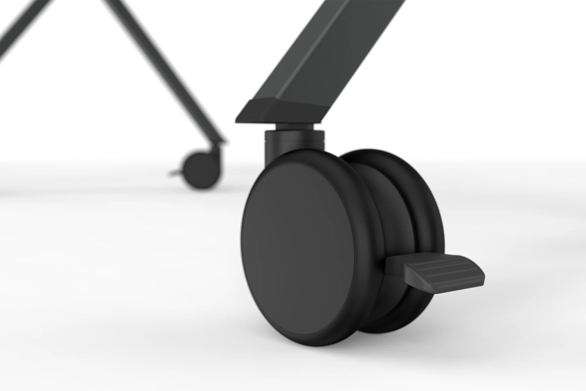 Bewegen Sie Ihre größten Displays sicher mit unseren übergroßen, fünf Zoll großen Rollen. Jede Rolle verfügt über ein Doppelrad-Design und ein Total-Lock-Bremssystem, das sowohl das Rad als auch den Drehpunkt der Rolle blockiert.
