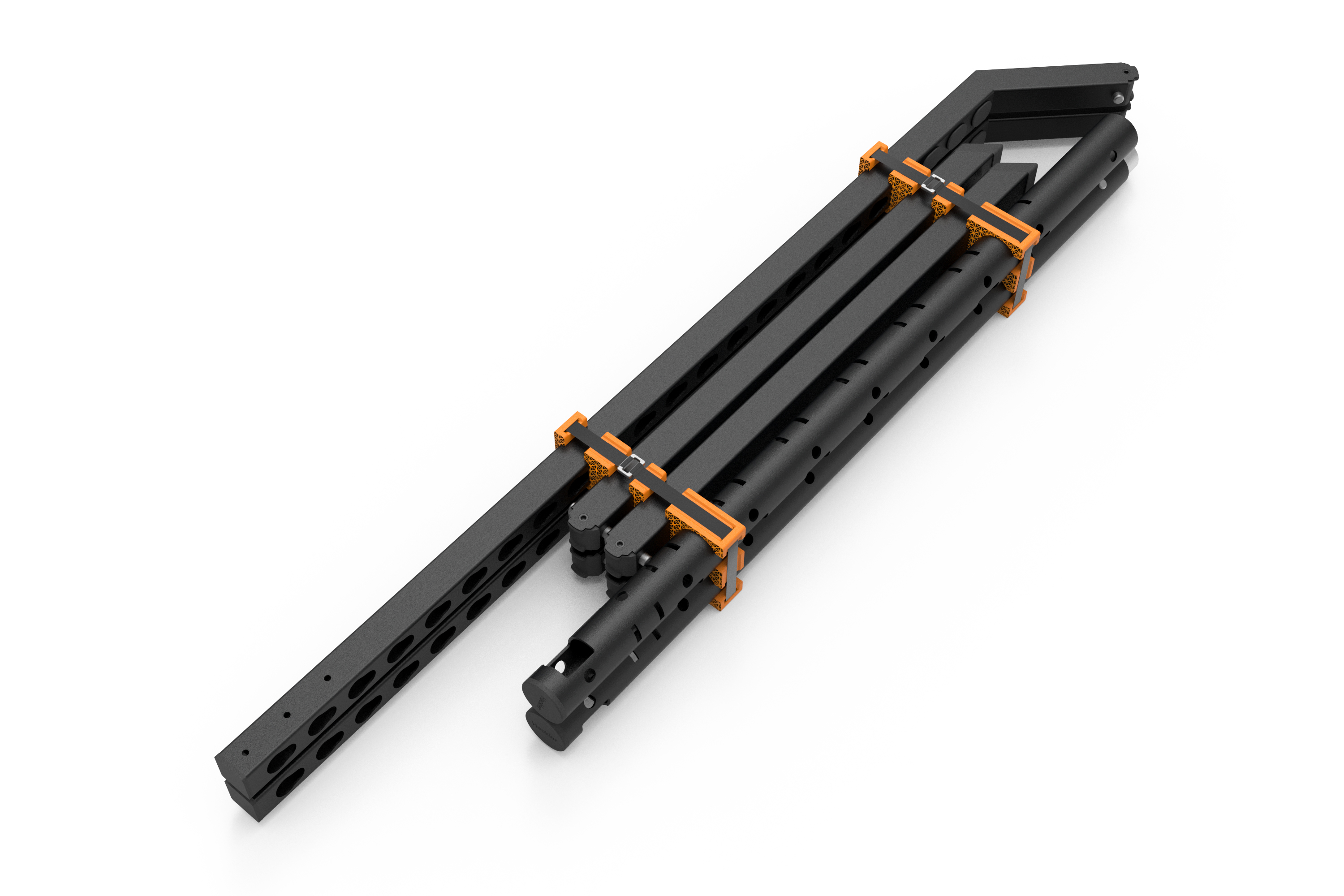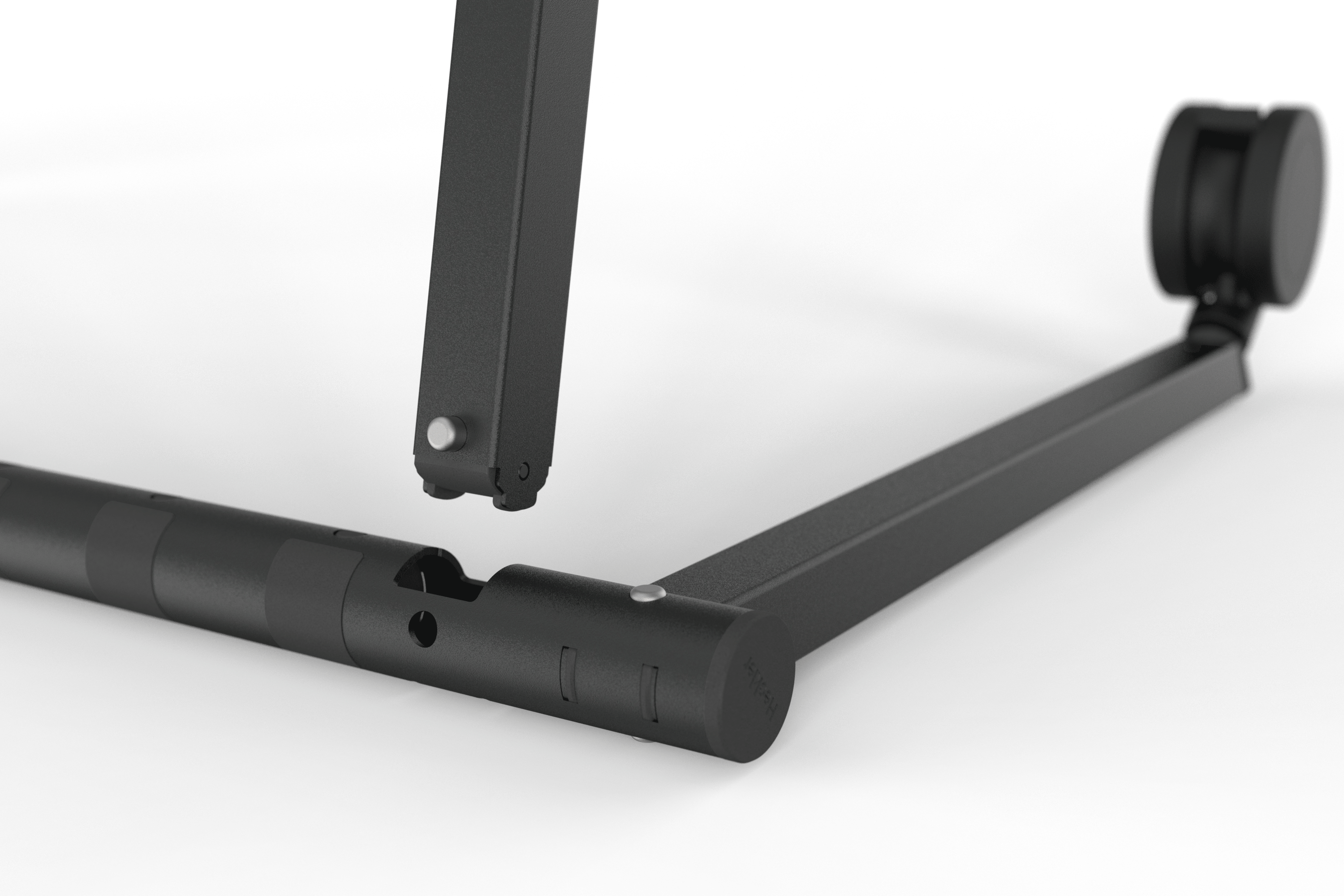 Mit unserem zum Patent angemeldeten Connection System können Sie den XL Display Rollwagen ohne Werkzeug zusammen- oder auseinanderbauen, was eine schnelle Einrichtung und einen zügigen Abbau ermöglicht. Die fertige Konstruktion ist eine äußerst stabile Verbindung aus ineinandergreifenden Stahlrohren.