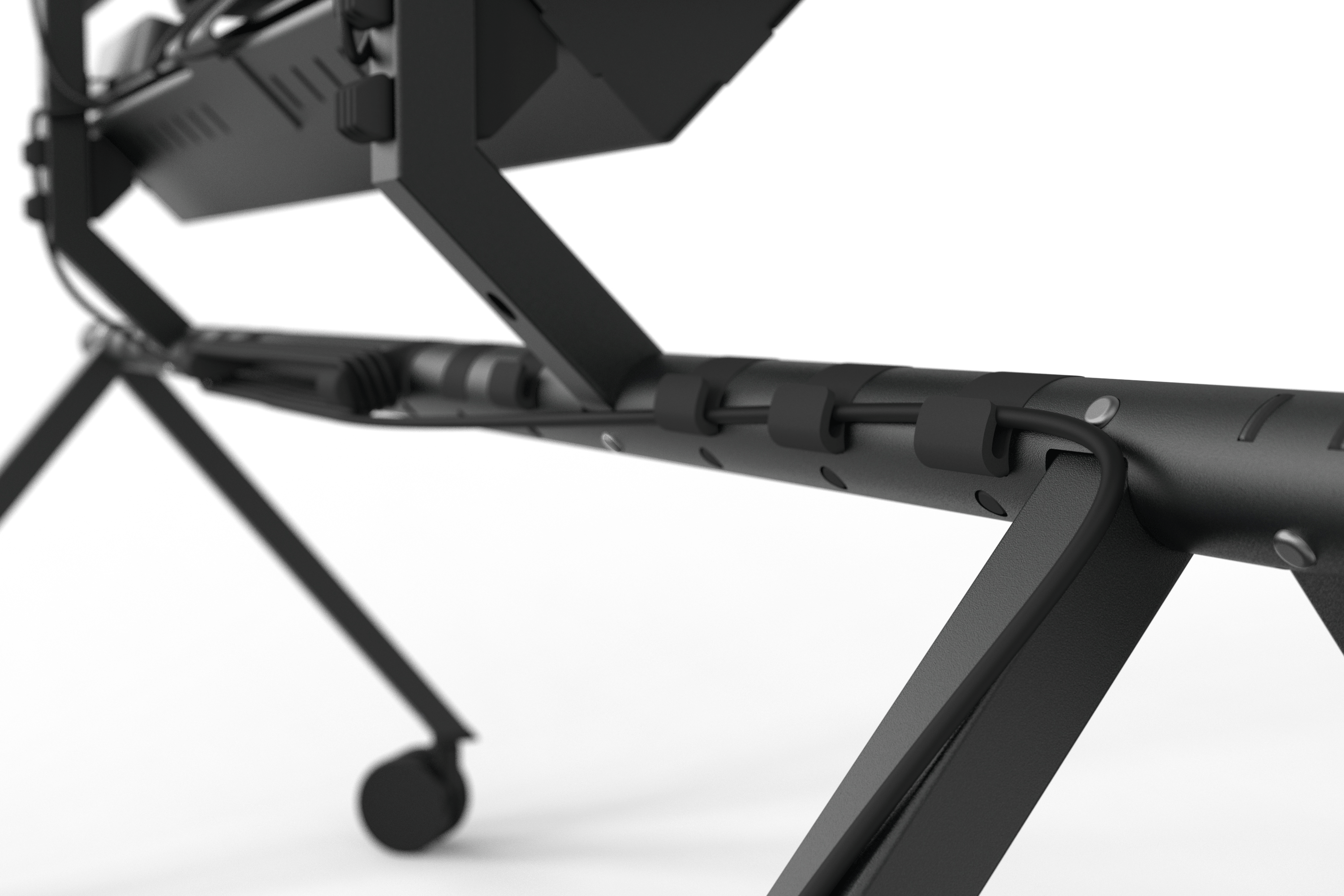 Jeder XL Display Rollwagen wird mit Kabelbindern und Zubehör zur Kabelführung geliefert, um eine ordentliche Kabelführung sicherzustellen. Diese Zubehörteile können an jeder Buchse entlang des Trägers montiert werden, sodass Sie für jede Installation und jeden Raum die optimale Kabelführungsstrategie erstellen können.