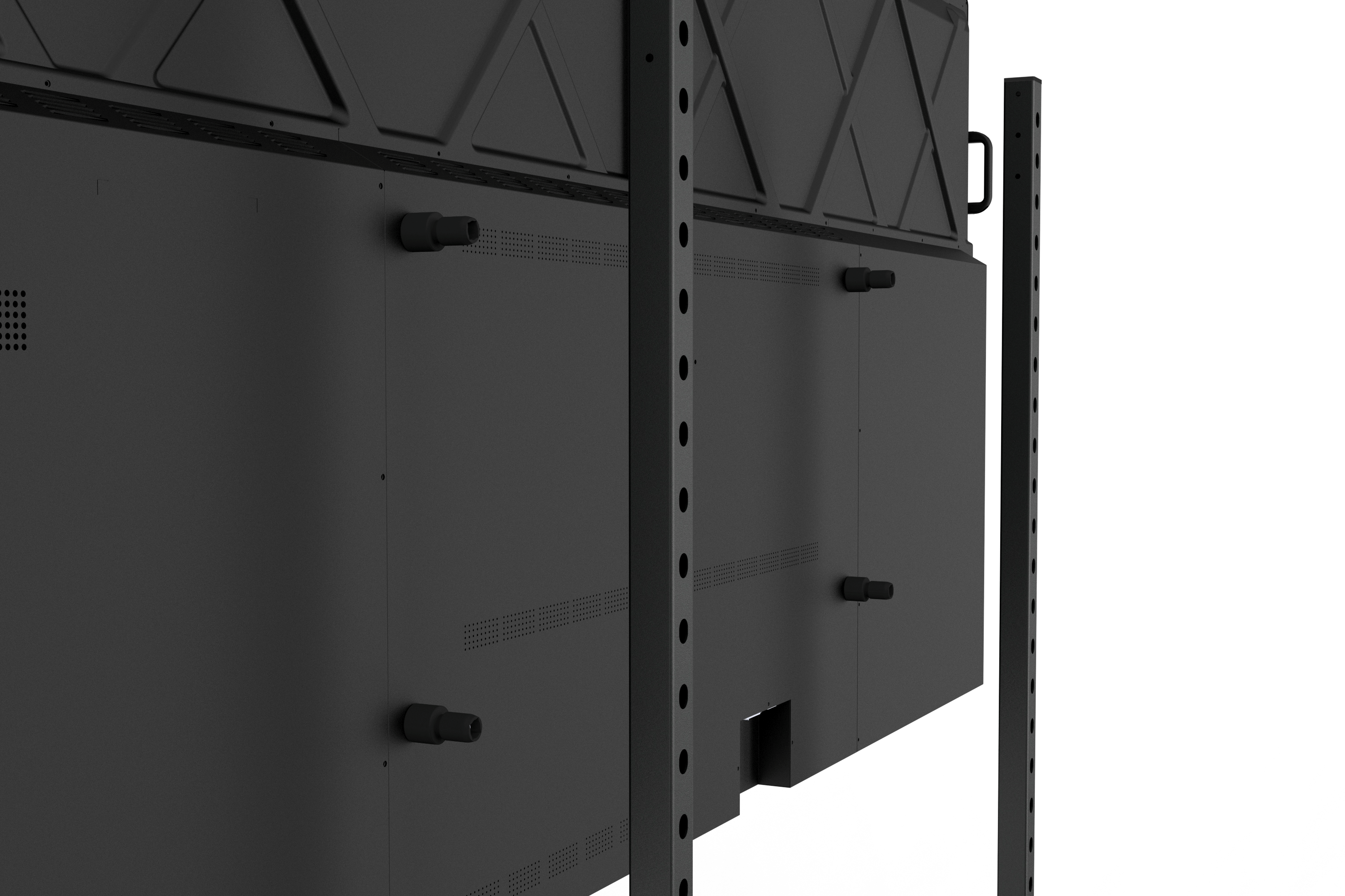 Mit unserem patentierten Säulen- und Trägersystem lässt sich der XL Display Rollwagen werkzeuglos anpassen, um Displays mit Montage-Mustern von VESA 400 bis VESA 1600 zu unterstützen. Ihr Display wird von zwei eleganten, äußerst robusten Stahlstützen getragen, wodurch eine vollständige Konstruktion entsteht, die aus jedem Blickwinkel gut aussieht.